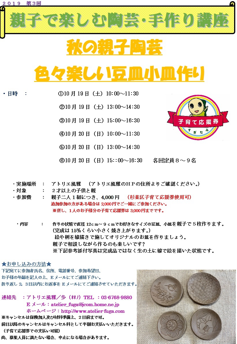 ・内容 : 夏休みの自由研究や夏休みの思い出に陶芸をやってみませんか?