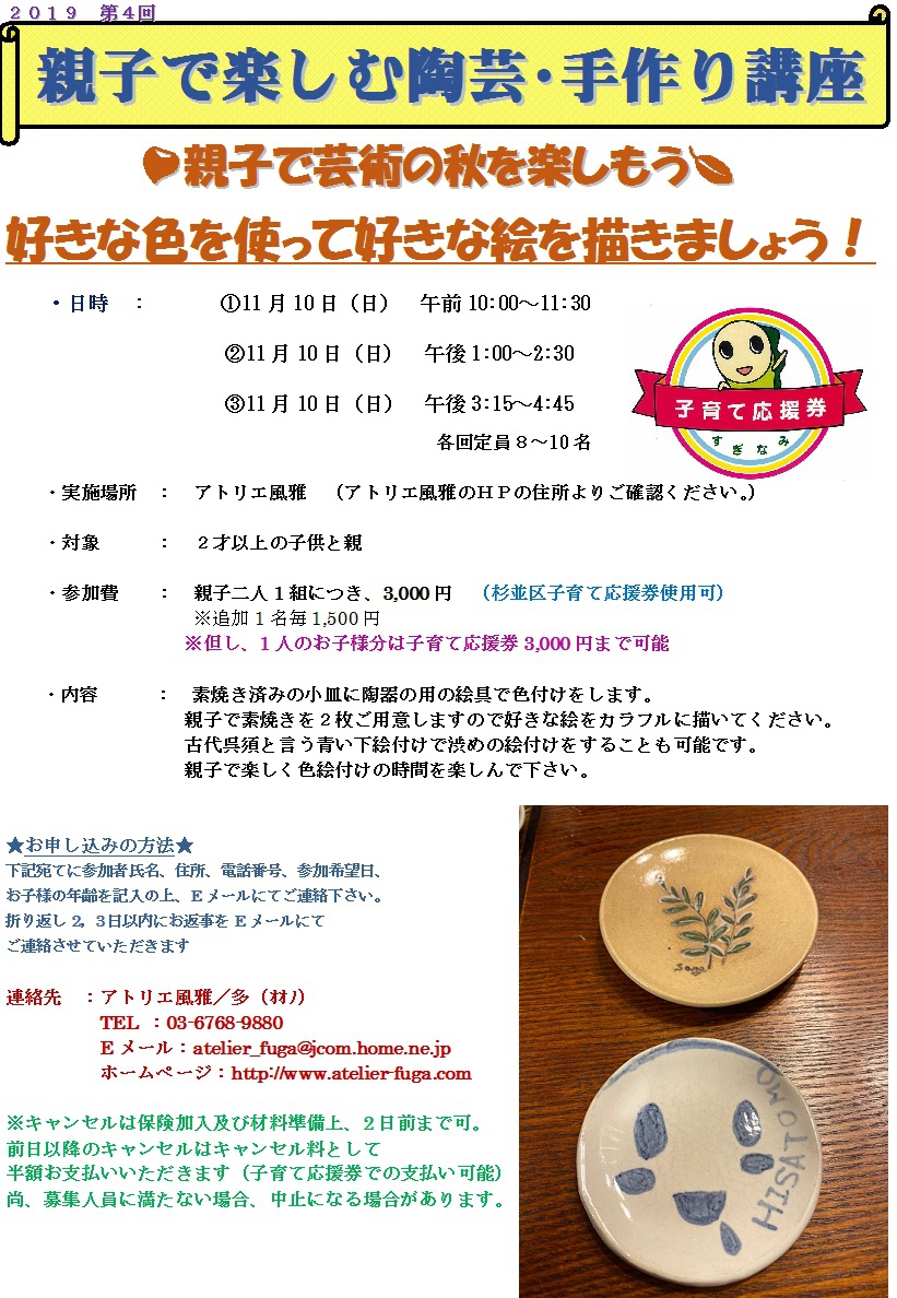 ・参加費 : 親子二人1組で、4,000円 (杉並区子育て応援券使用可)