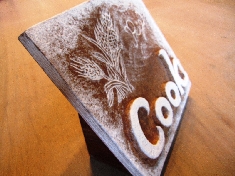プレートの裏には木を貼りつけてあり自立するように仕上げています。表札タイプに仕上げる事も可能です。