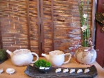 カップにストレーナーを置き、茶葉を入れ熱湯を注ぎます。